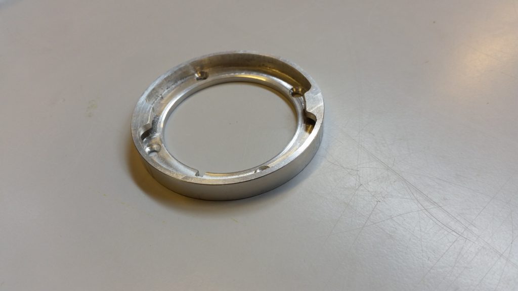 Denne lille fine del er drejet på vores maskine med Y-akse og roterende værktøjer og herefter stukket af på bagside